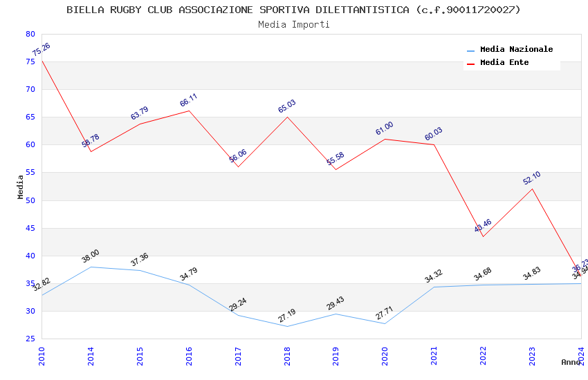 | Anno | Firme | Importi | Media | Naz. | Reg. | Prov. | Comu. |
