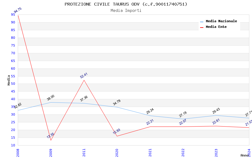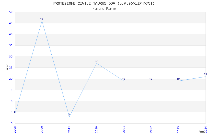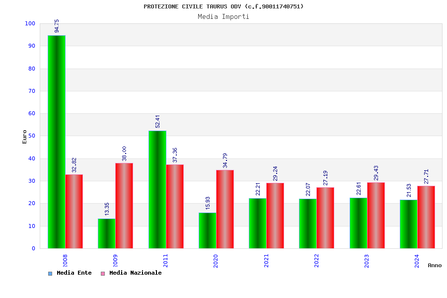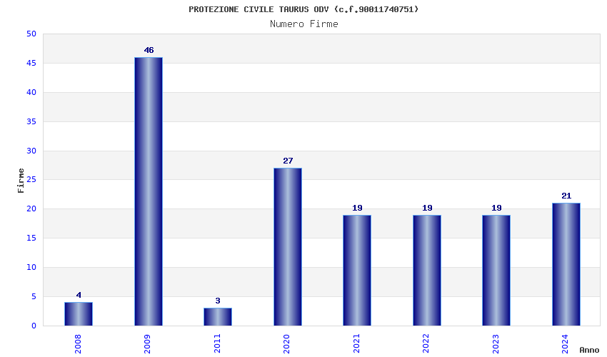 | Anno | Firme | Importi | Media | Naz. | Reg. | Prov. | Comu. |
