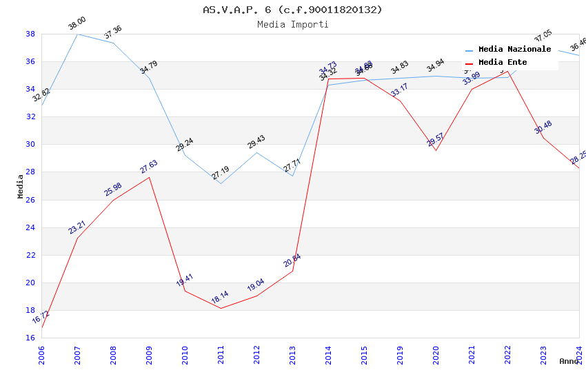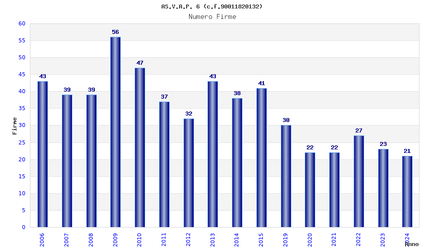 | Anno | Firme | Importi | Media | Naz. | Reg. | Prov. | Comu. |