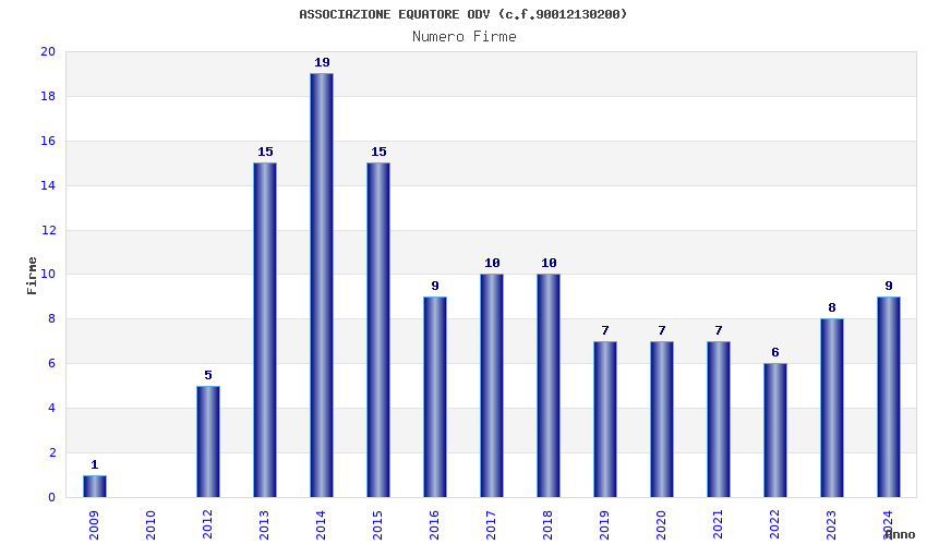 | Anno | Firme | Importi | Media | Naz. | Reg. | Prov. | Comu. |