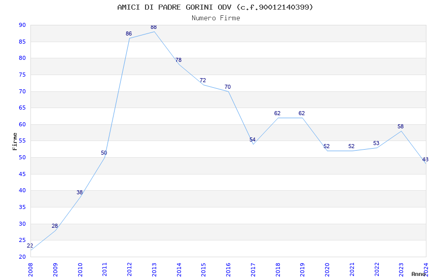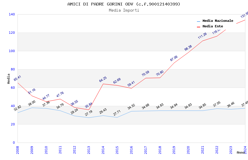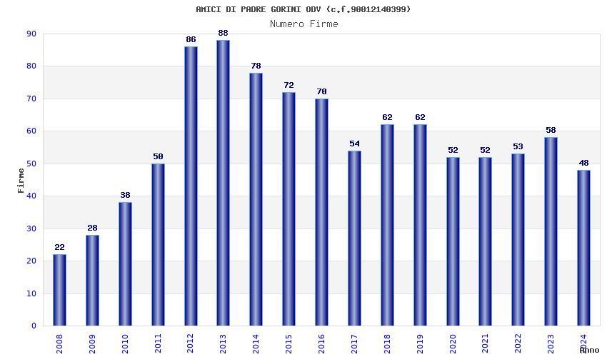 | Anno | Firme | Importi | Media | Naz. | Reg. | Prov. | Comu. |