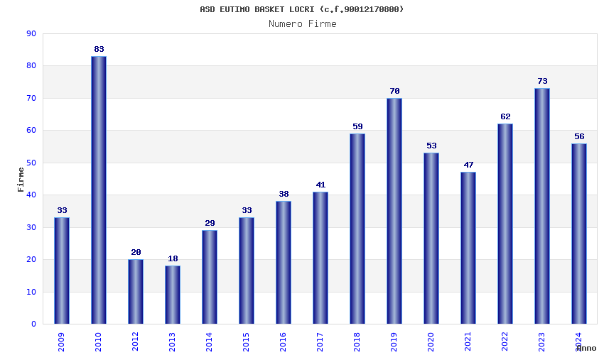 | 2010 | 83 | 3.162,77 | 38,11 | 12.158 | 242 | 79 | 2 |