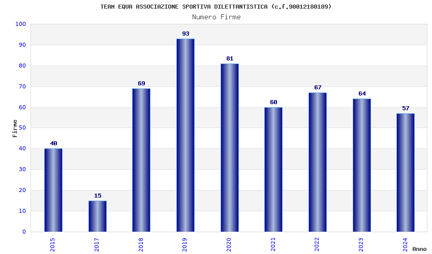 | Anno | Firme | Importi | Media | Naz. | Reg. | Prov. | Comu. |