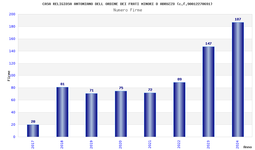 | Anno | Firme | Importi | Media | Naz. | Reg. | Prov. | Comu. |
