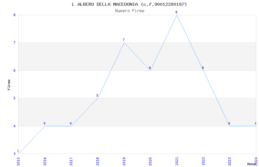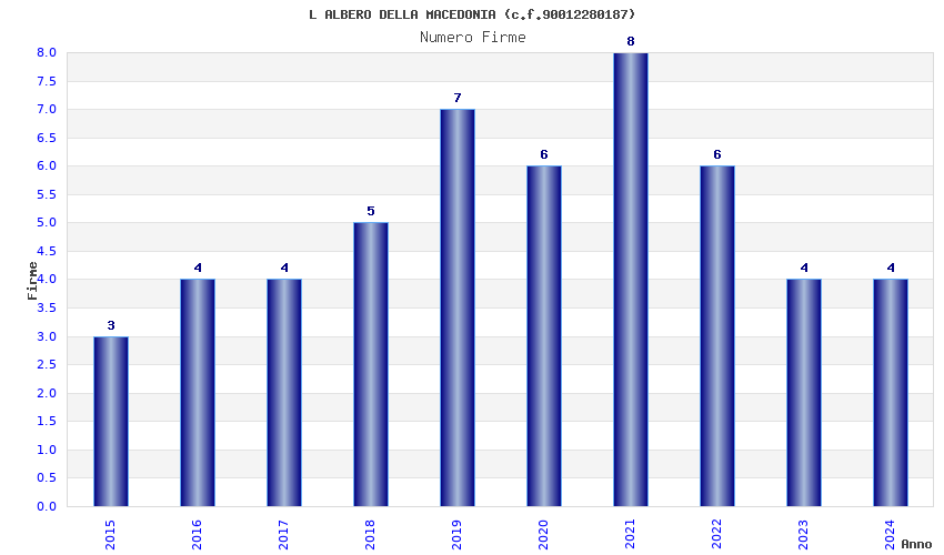 | Anno | Firme | Importi | Media | Naz. | Reg. | Prov. | Comu. |