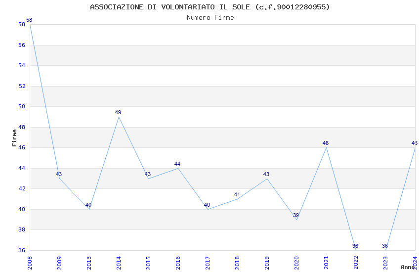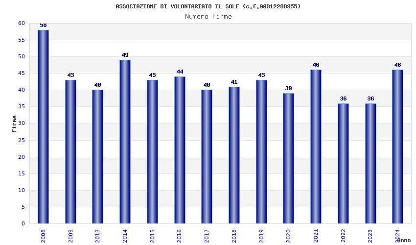 | Anno | Firme | Importi | Media | Naz. | Reg. | Prov. | Comu. |