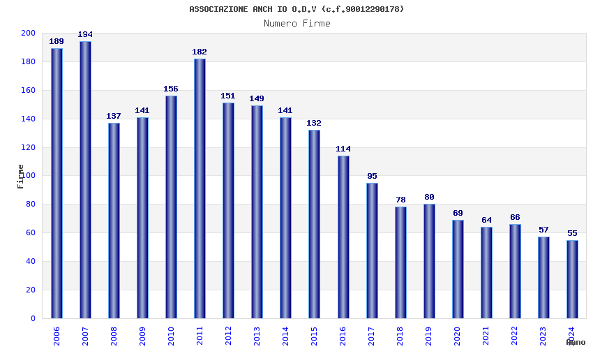 | Anno | Firme | Importi | Media | Naz. | Reg. | Prov. | Comu. |