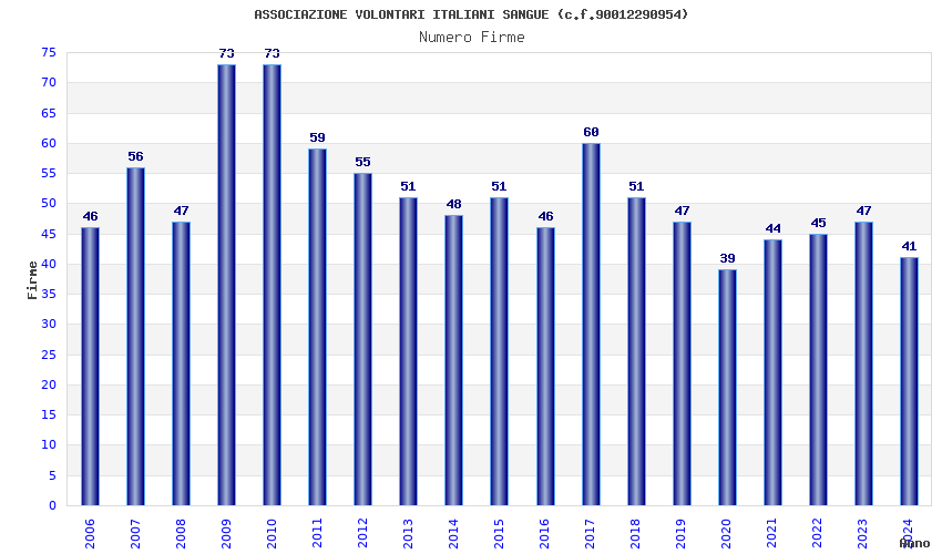 | Anno | Firme | Importi | Media | Naz. | Reg. | Prov. | Comu. |