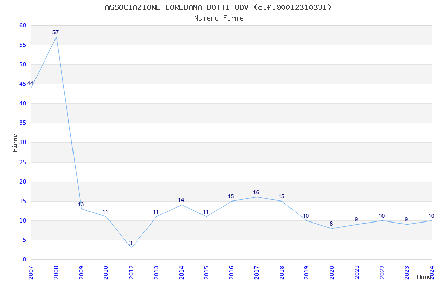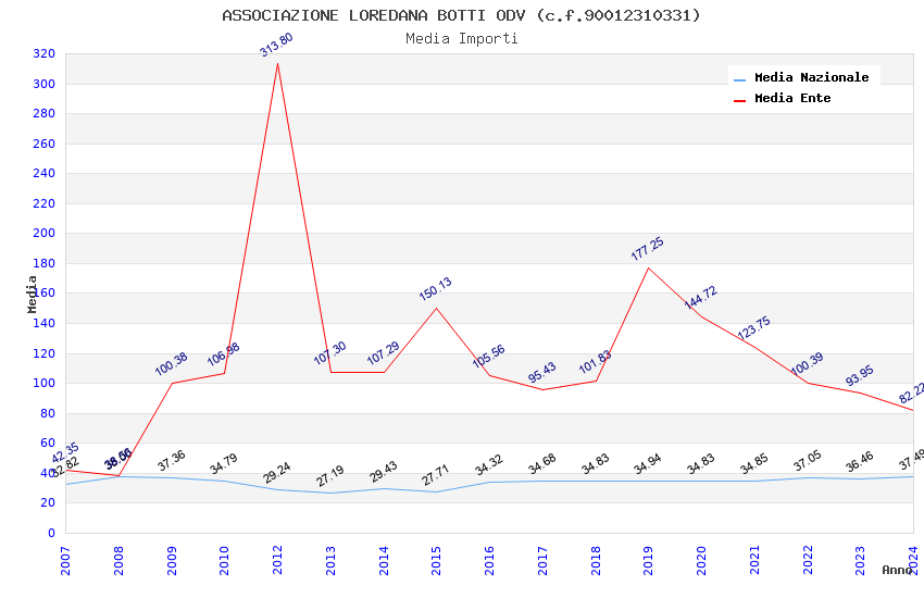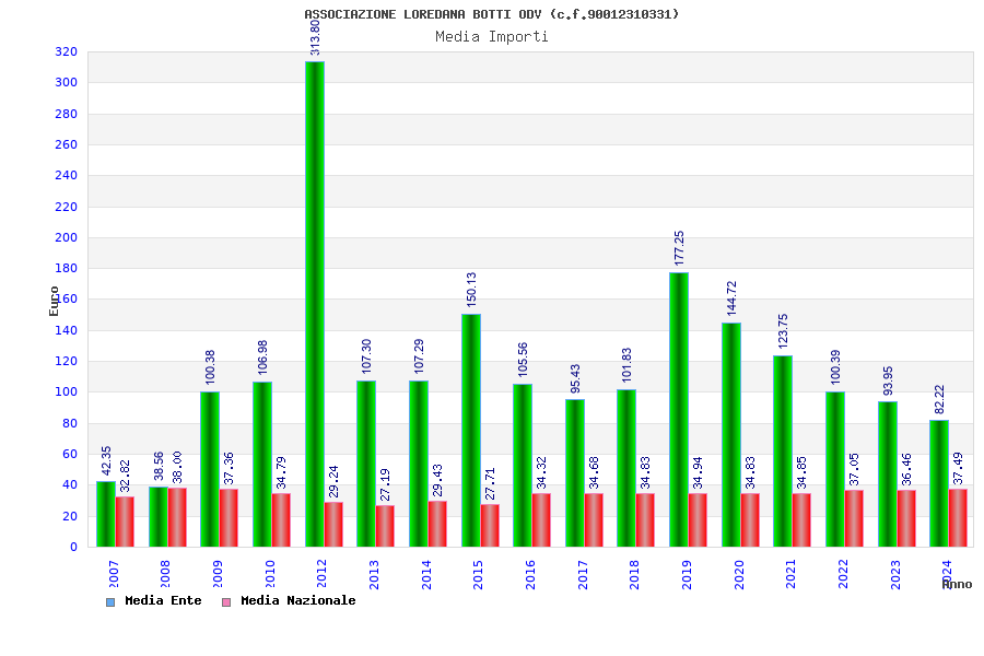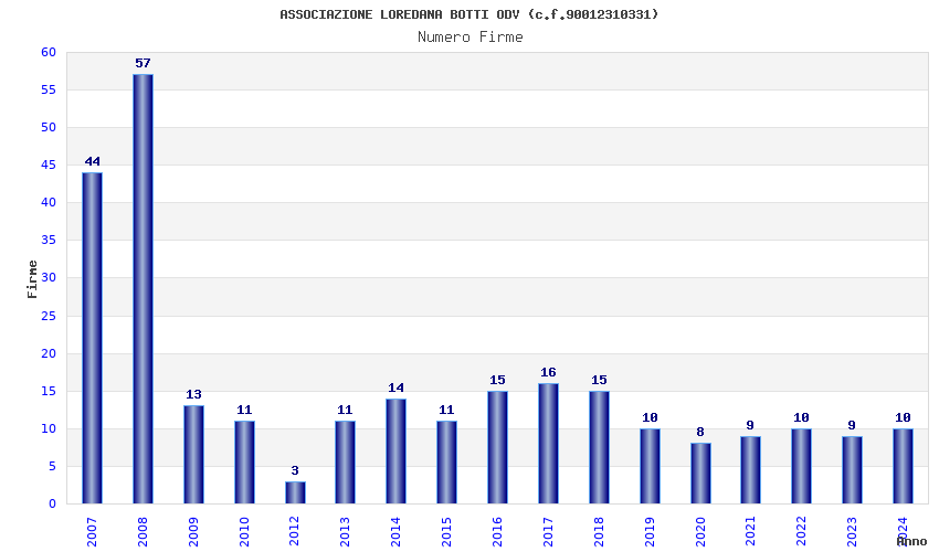 | Anno | Firme | Importi | Media | Naz. | Reg. | Prov. | Comu. |