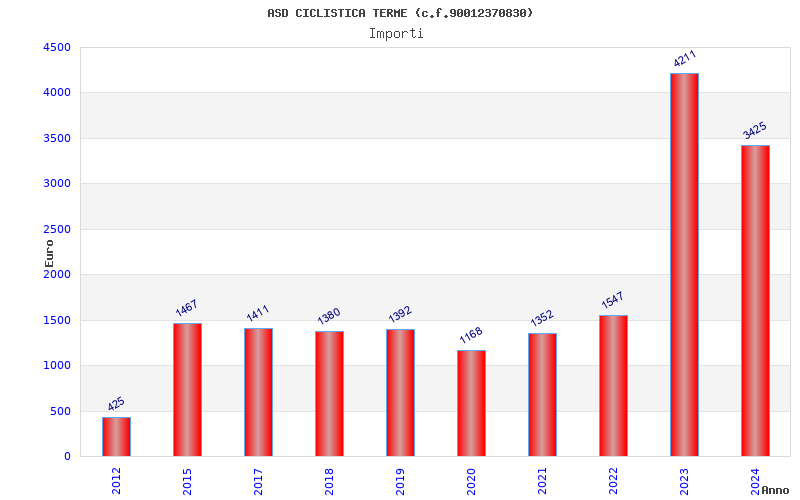 | Anno | Firme | Importi | Media | Naz. | Reg. | Prov. | Comu. |