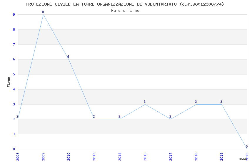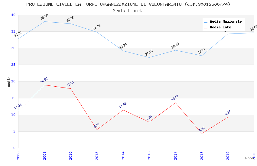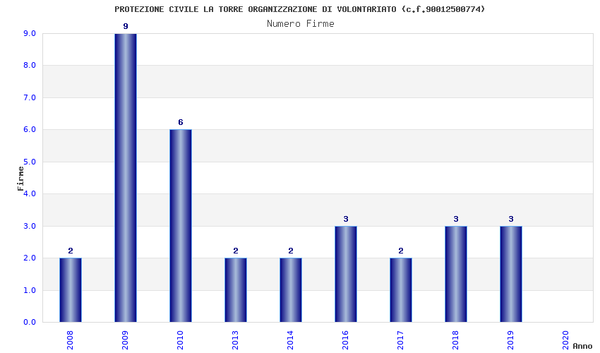 | Anno | Firme | Importi | Media | Naz. | Reg. | Prov. | Comu. |