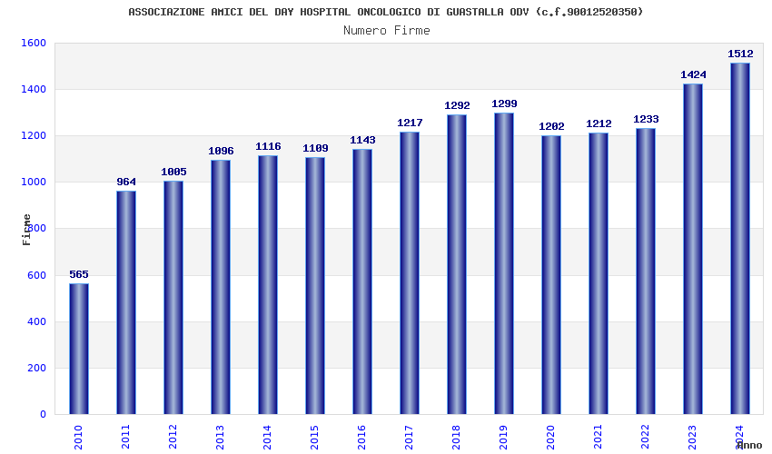 | Anno | Firme | Importi | Media | Naz. | Reg. | Prov. | Comu. |