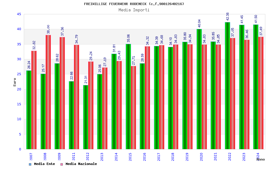 | Anno | Firme | Importi | Media | Naz. | Reg. | Prov. | Comu. |