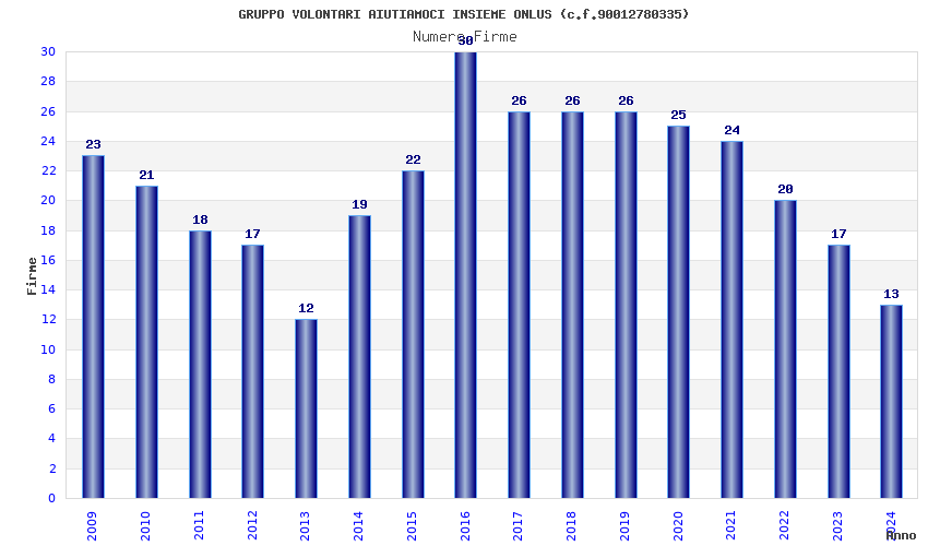 | Anno | Firme | Importi | Media | Naz. | Reg. | Prov. | Comu. |