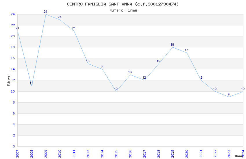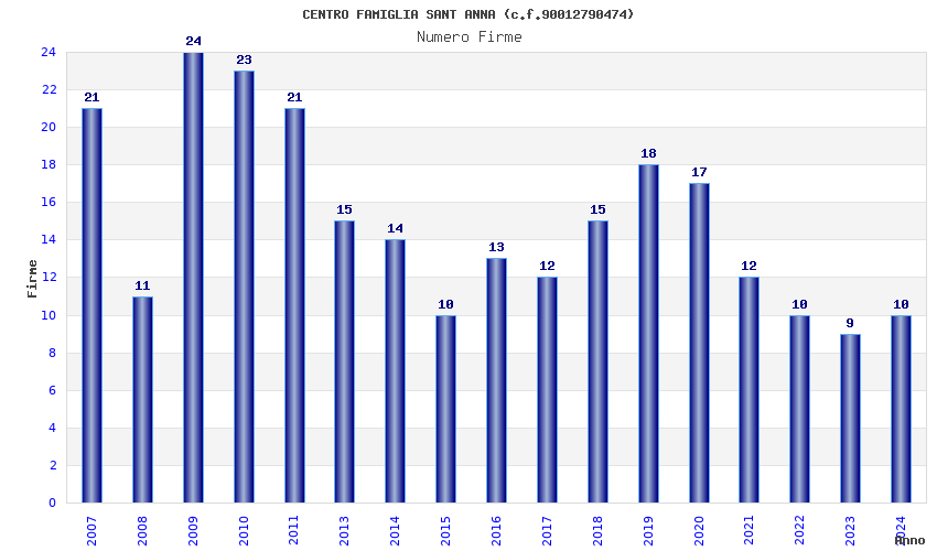 | Anno | Firme | Importi | Media | Naz. | Reg. | Prov. | Comu. |
