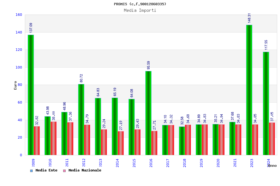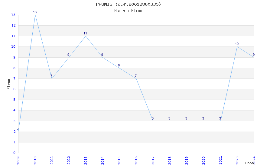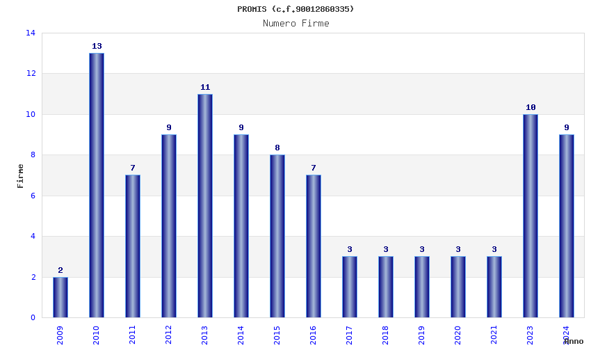 | Anno | Firme | Importi | Media | Naz. | Reg. | Prov. | Comu. |