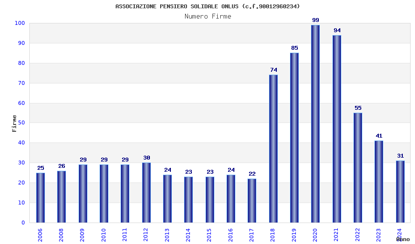 | Anno | Firme | Importi | Media | Naz. | Reg. | Prov. | Comu. |