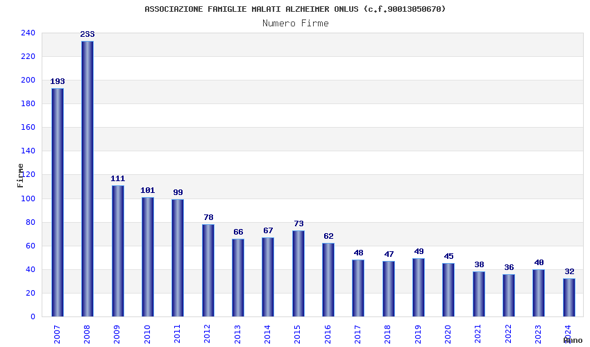 | Anno | Firme | Importi | Media | Naz. | Reg. | Prov. | Comu. |
