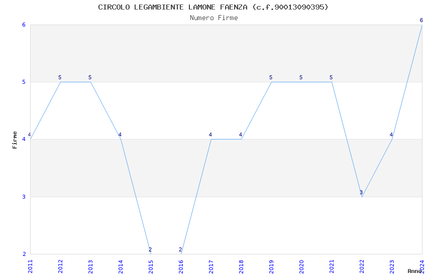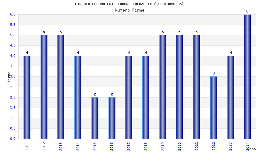 | Anno | Firme | Importi | Media | Naz. | Reg. | Prov. | Comu. |