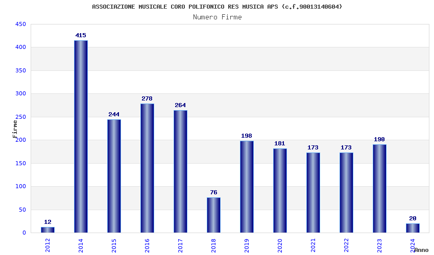 | Anno | Firme | Importi | Media | Naz. | Reg. | Prov. | Comu. |