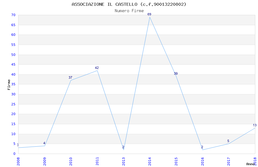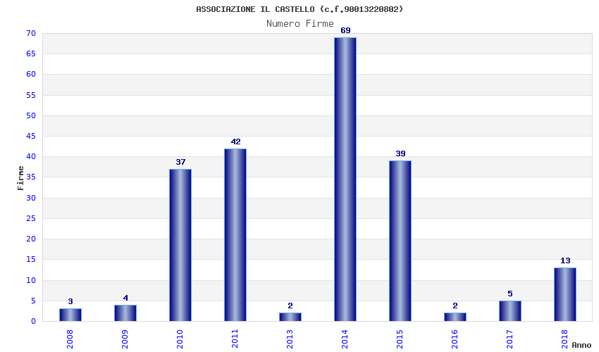 | Anno | Firme | Importi | Media | Naz. | Reg. | Prov. | Comu. |