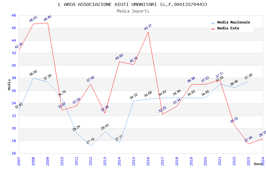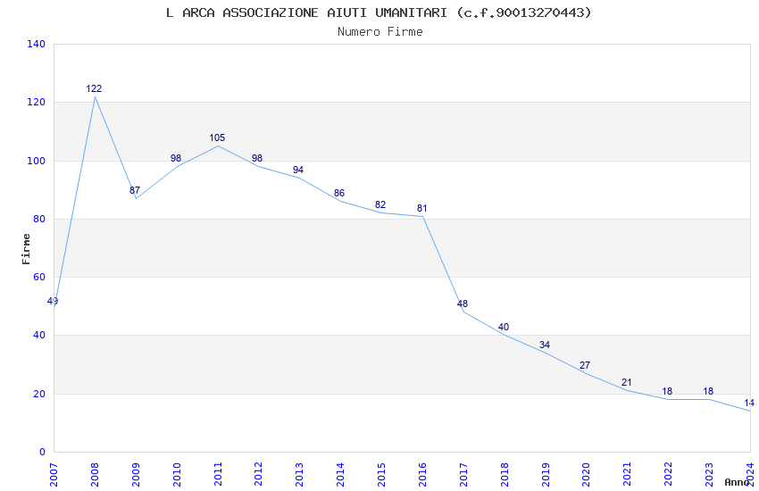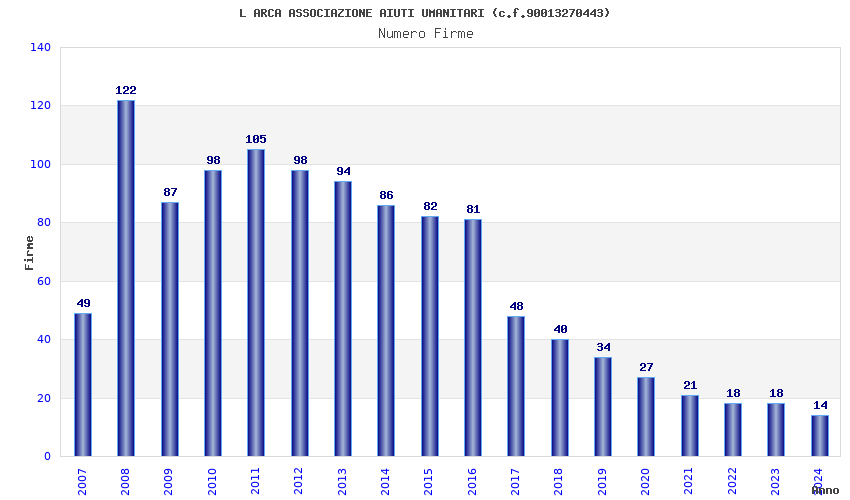 | Anno | Firme | Importi | Media | Naz. | Reg. | Prov. | Comu. |