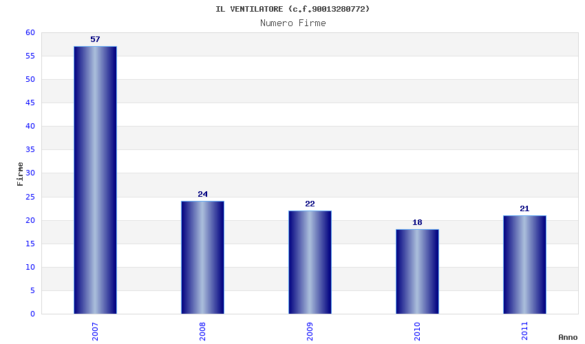| Anno | Firme | Importi | Media | Naz. | Reg. | Prov. | Comu. |