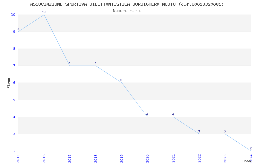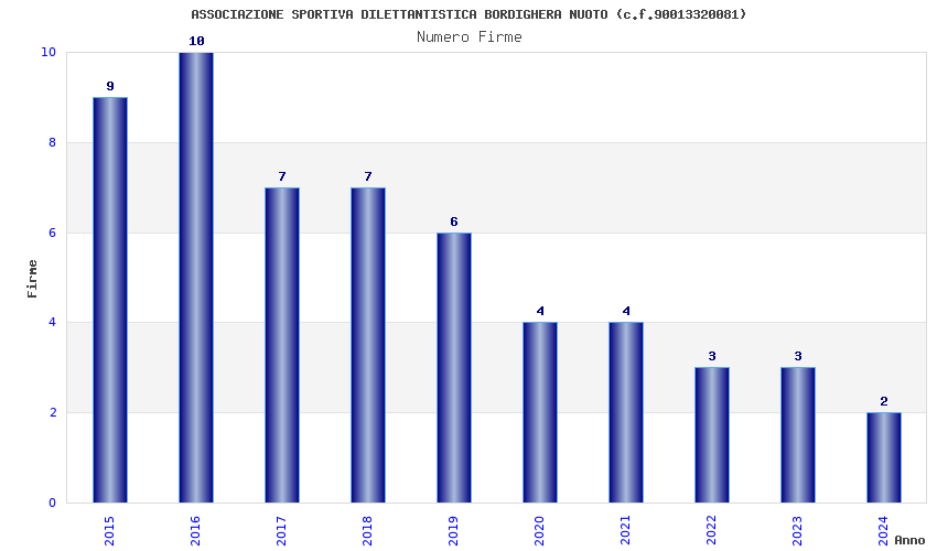 | Anno | Firme | Importi | Media | Naz. | Reg. | Prov. | Comu. |