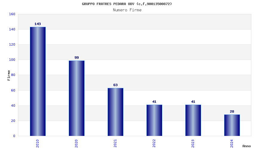 | Anno | Firme | Importi | Media | Naz. | Reg. | Prov. | Comu. |