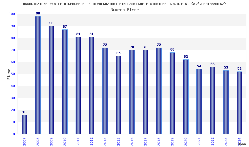 | 2008 | 98 | 2.130,64 | 21,74 | 14.375 | 3.322 | 290 | 2 |