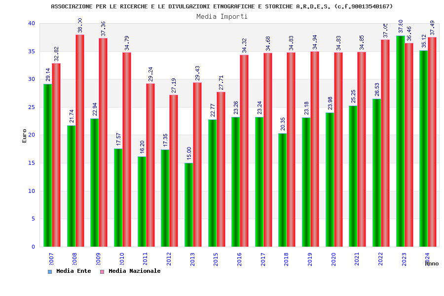 | Anno | Firme | Importi | Media | Naz. | Reg. | Prov. | Comu. |