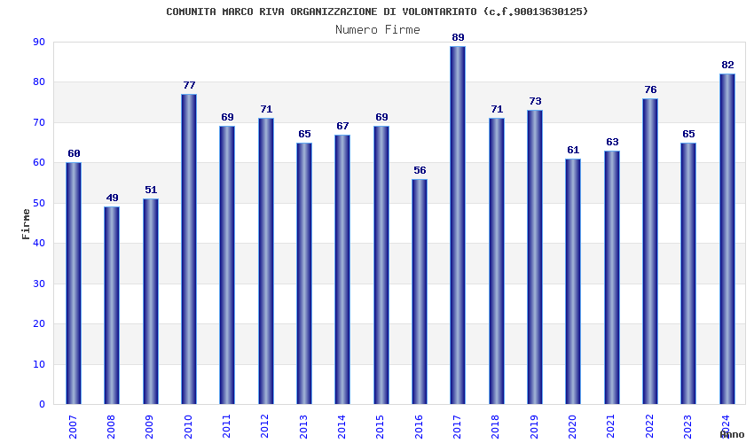 | Anno | Firme | Importi | Media | Naz. | Reg. | Prov. | Comu. |