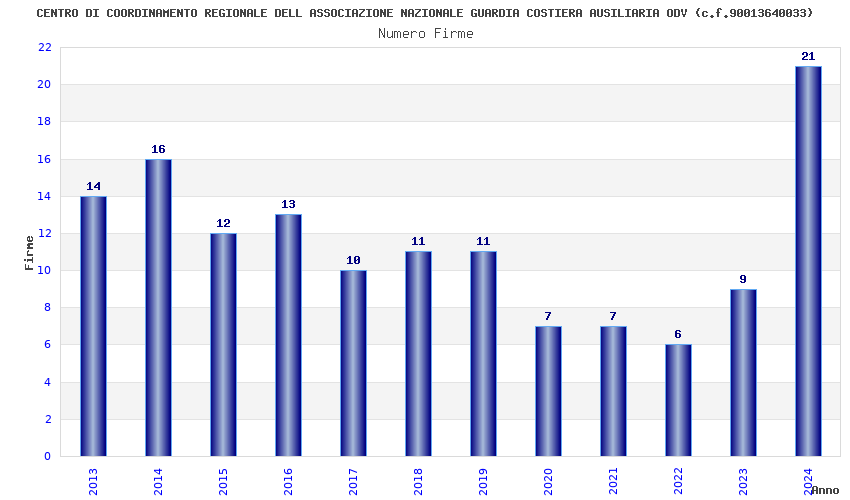 | Anno | Firme | Importi | Media | Naz. | Reg. | Prov. | Comu. |