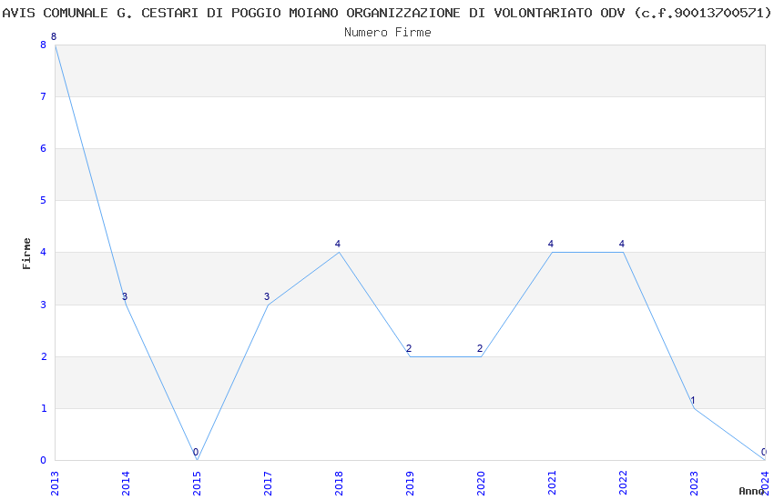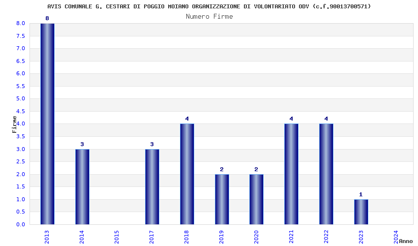 | Anno | Firme | Importi | Media | Naz. | Reg. | Prov. | Comu. |
