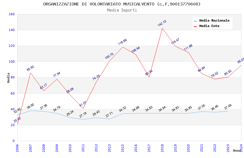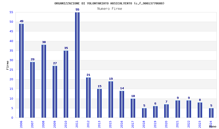 | Anno | Firme | Importi | Media | Naz. | Reg. | Prov. | Comu. |