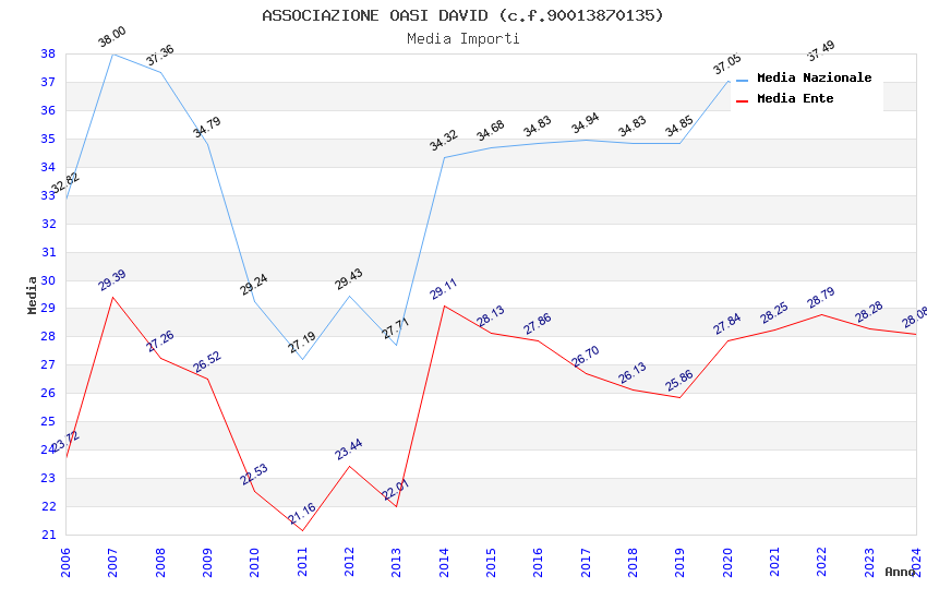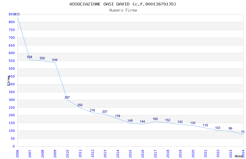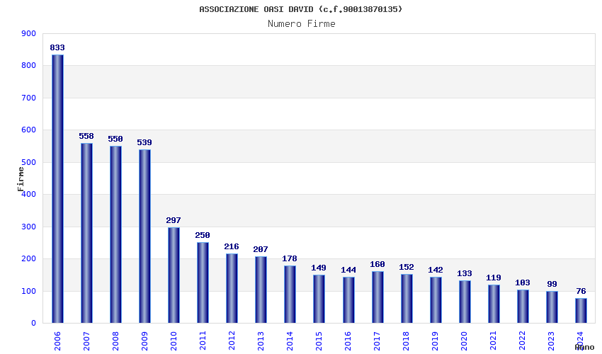 | Anno | Firme | Importi | Media | Naz. | Reg. | Prov. | Comu. |