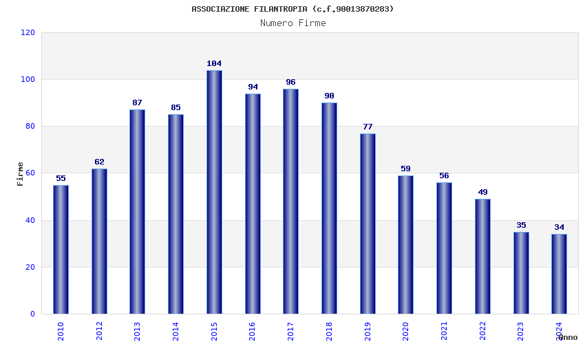 | Anno | Firme | Importi | Media | Naz. | Reg. | Prov. | Comu. |