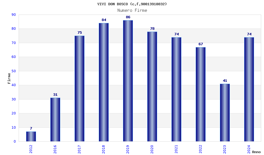 | Anno | Firme | Importi | Media | Naz. | Reg. | Prov. | Comu. |