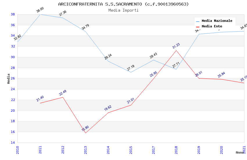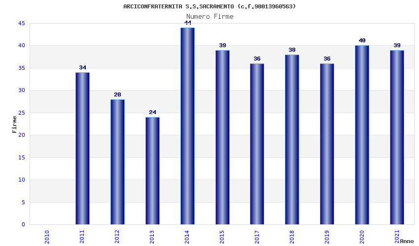| Anno | Firme | Importi | Media | Naz. | Reg. | Prov. | Comu. |