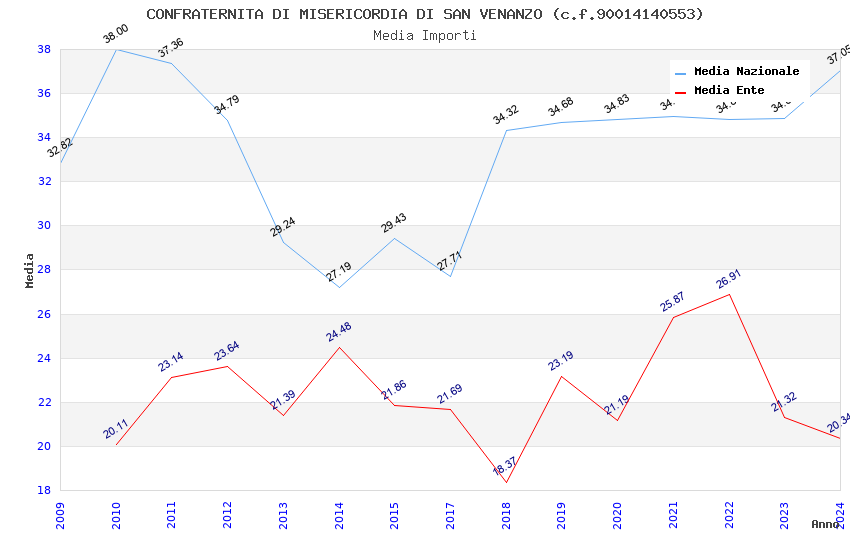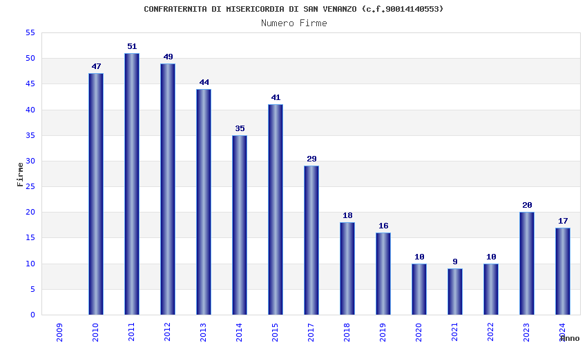 | Anno | Firme | Importi | Media | Naz. | Reg. | Prov. | Comu. |