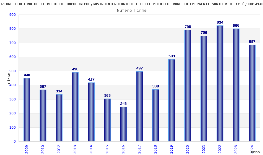 | Anno | Firme | Importi | Media | Naz. | Reg. | Prov. | Comu. |