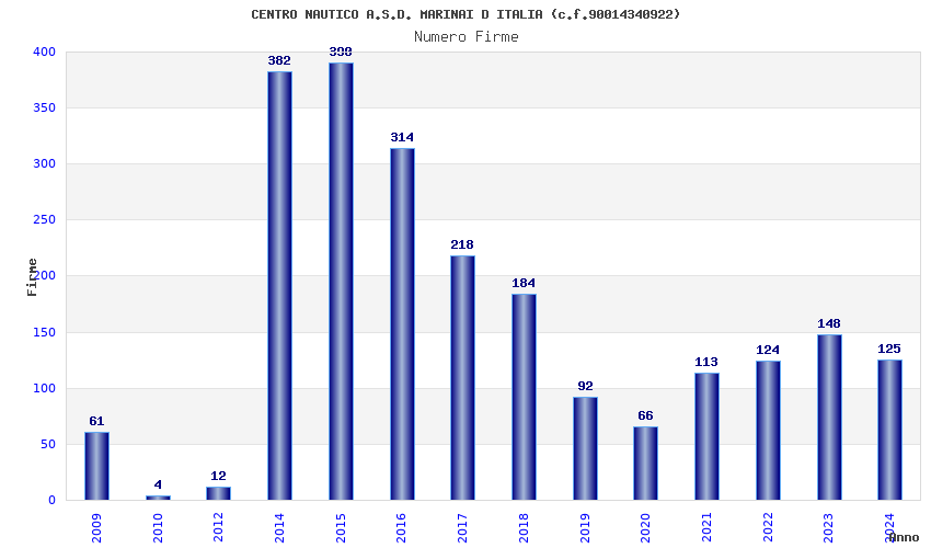 Anno Firme Importi Media Naz. Reg. Prov. Comu.