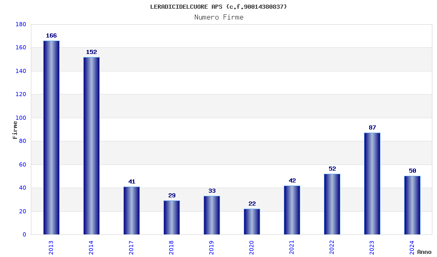 | Anno | Firme | Importi | Media | Naz. | Reg. | Prov. | Comu. |