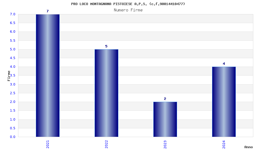 | Anno | Firme | Importi | Media | Naz. | Reg. | Prov. | Comu. |