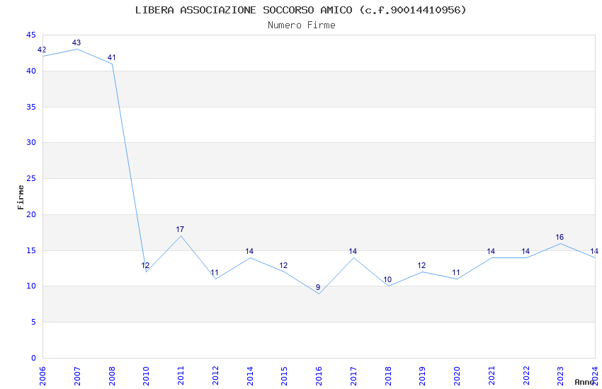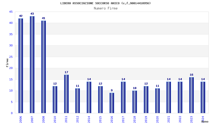 | Anno | Firme | Importi | Media | Naz. | Reg. | Prov. | Comu. |