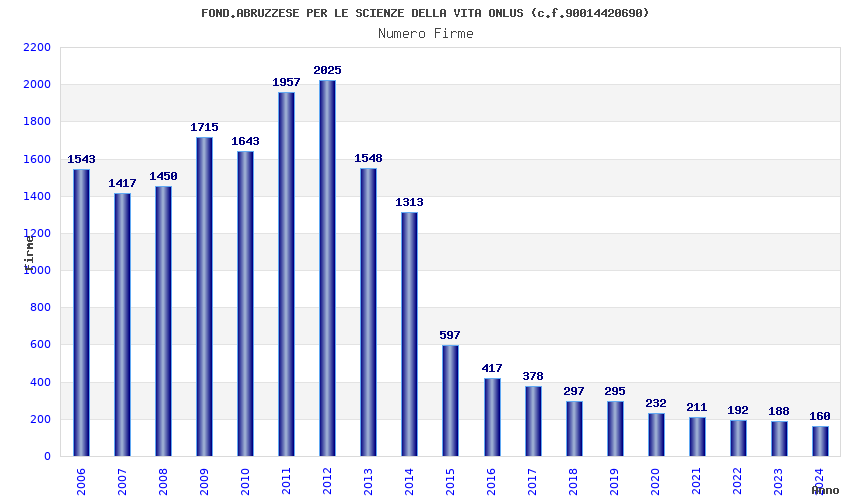 | Anno | Firme | Importi | Media | Naz. | Reg. | Prov. | Comu. |