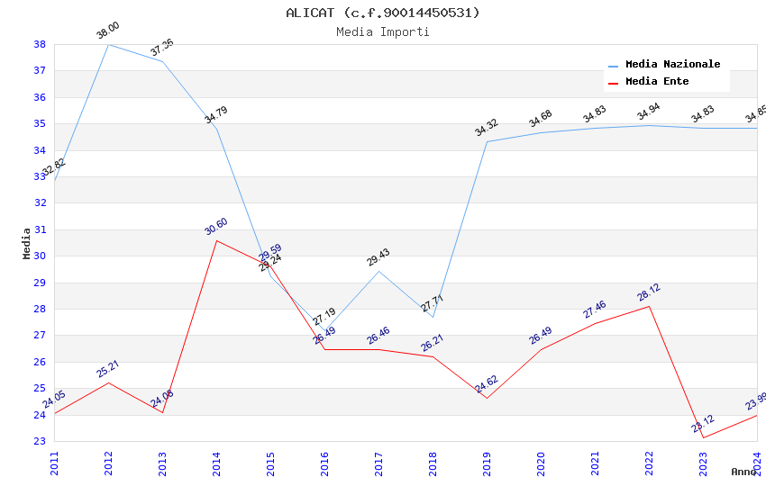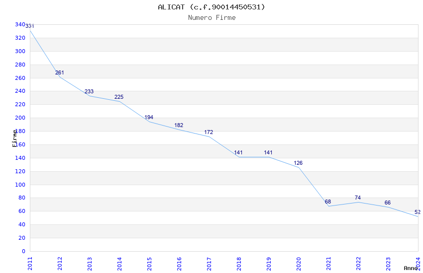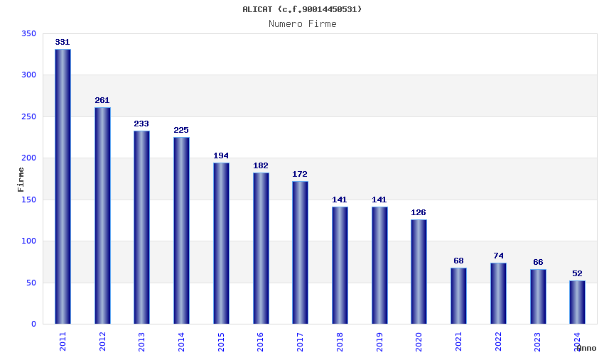| Anno | Firme | Importi | Media | Naz. | Reg. | Prov. | Comu. |