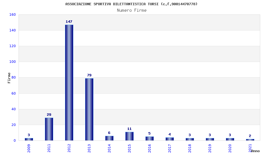 | Anno | Firme | Importi | Media | Naz. | Reg. | Prov. | Comu. |