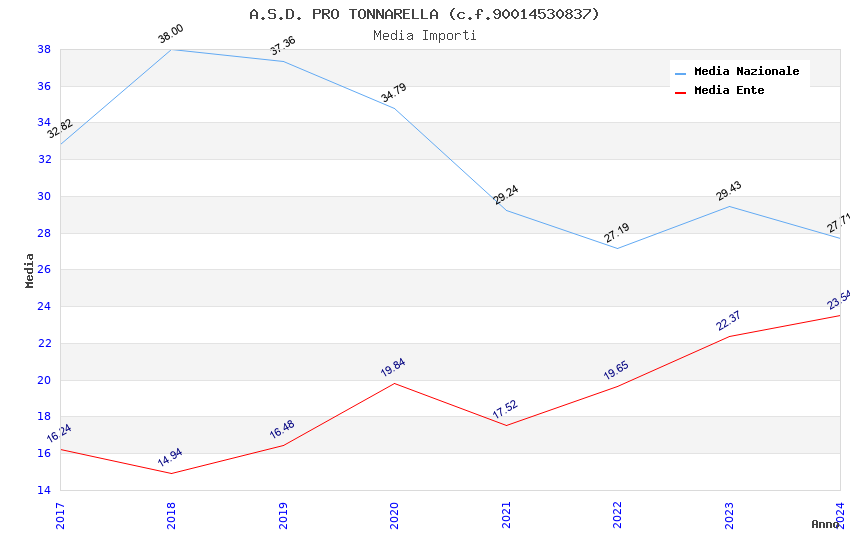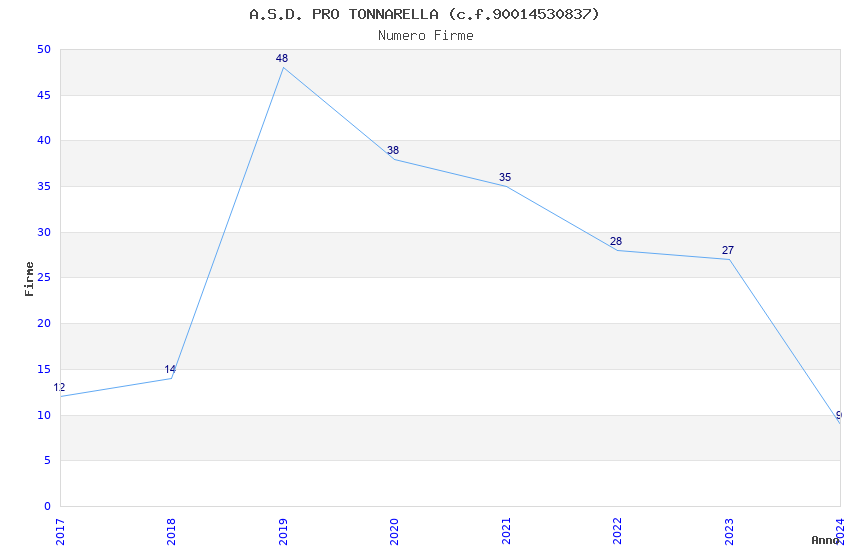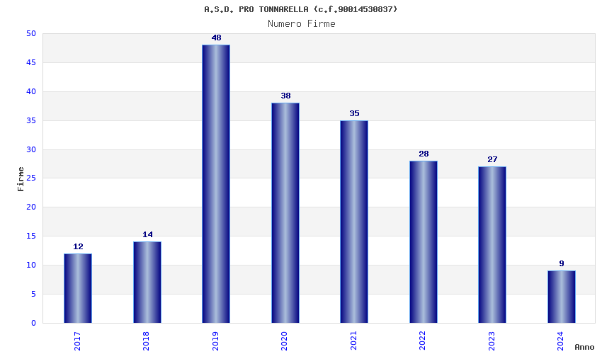 | Anno | Firme | Importi | Media | Naz. | Reg. | Prov. | Comu. |