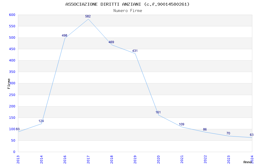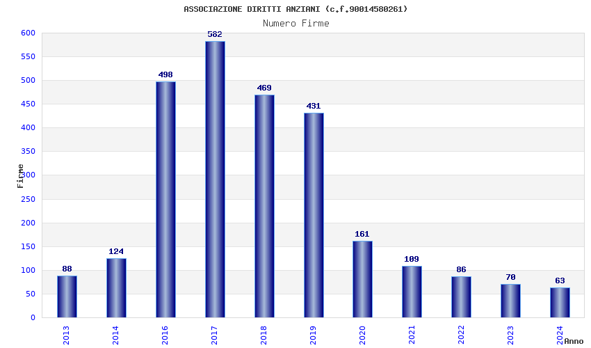 | Anno | Firme | Importi | Media | Naz. | Reg. | Prov. | Comu. |